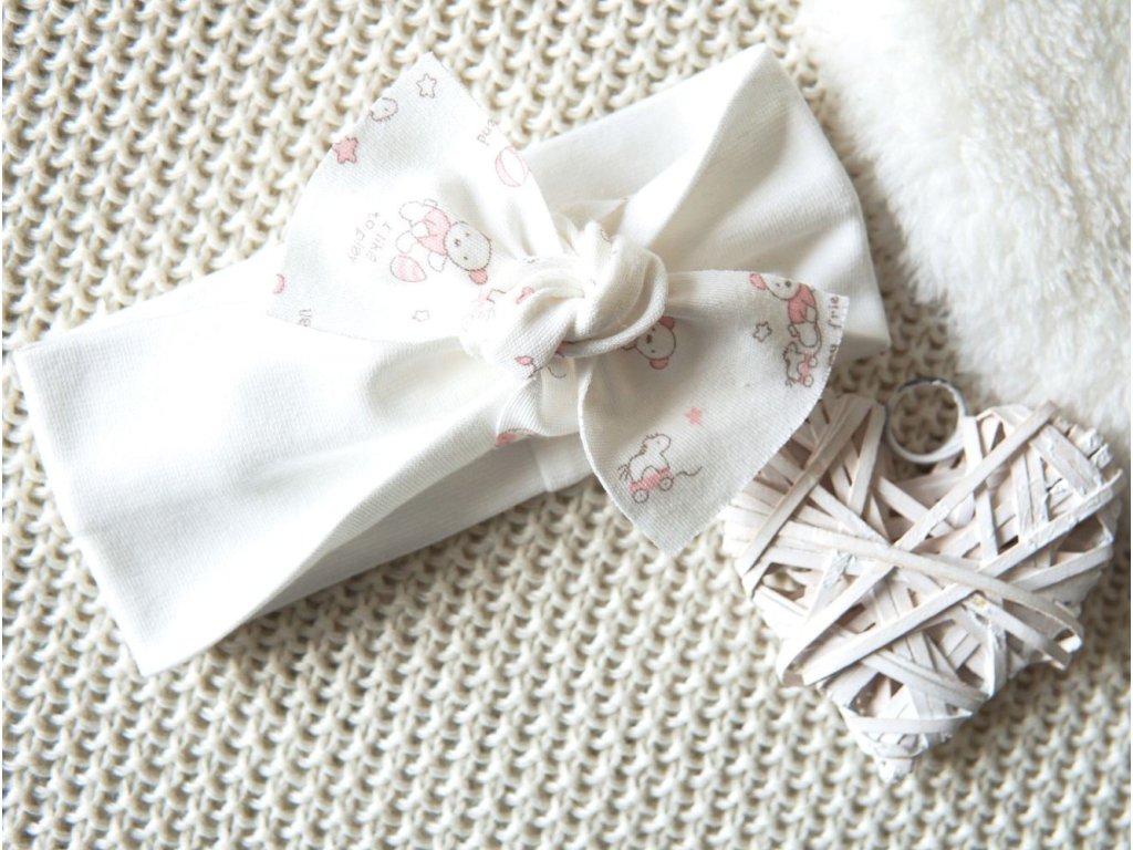 Elastická čelenka smetanová, pentle malé růžové hračky