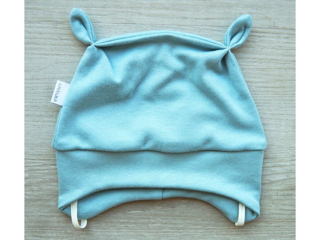 Zavazovací čepička s ozdobnými oušky z velice elastického materiálu a čepička tudíž vydrží i přes dvě velikosti.