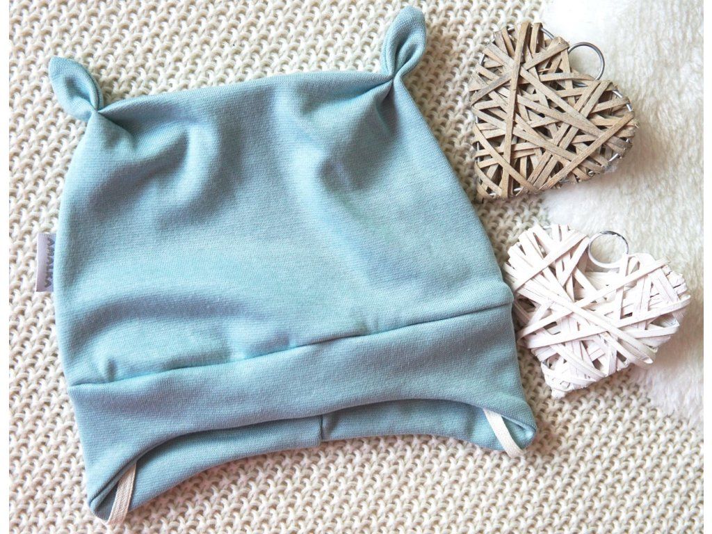 Zavazovací čepička s ozdobnými oušky z velice elastického materiálu a čepička tudíž vydrží i přes dvě velikosti.
