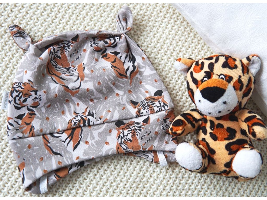 Kvalitní, digitální potisk úžasných tygrů. Velmi slušivá na hlavičce. Čepička bezvadně kryje i ouška a proto se v ní bude Vaše miminko...