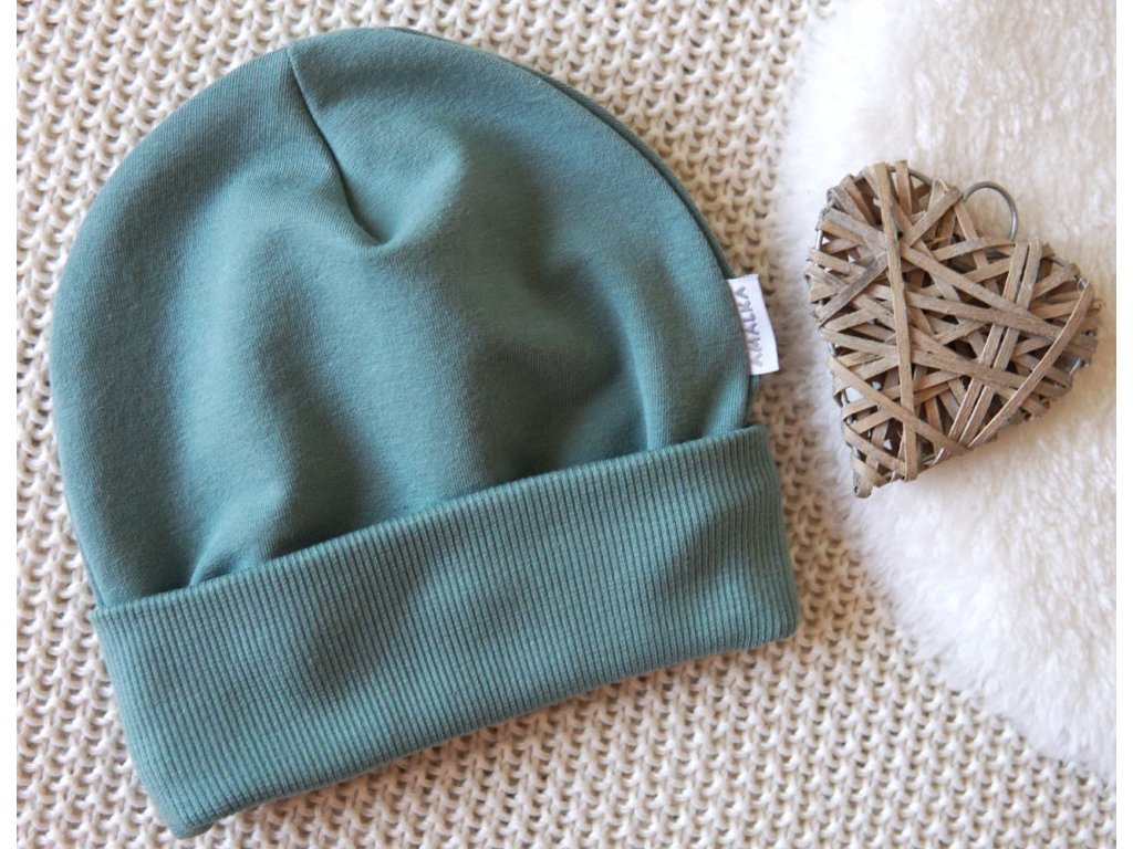 Elastická čepička teplákovina přeložený lem, kaktusově zelená