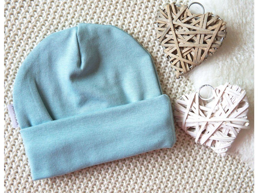 Elastická čepička teplákovina přeložený lem, ledově zelená