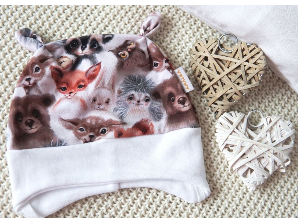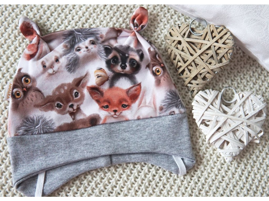 Elastická čepička teplákovina, koukající zvířátka