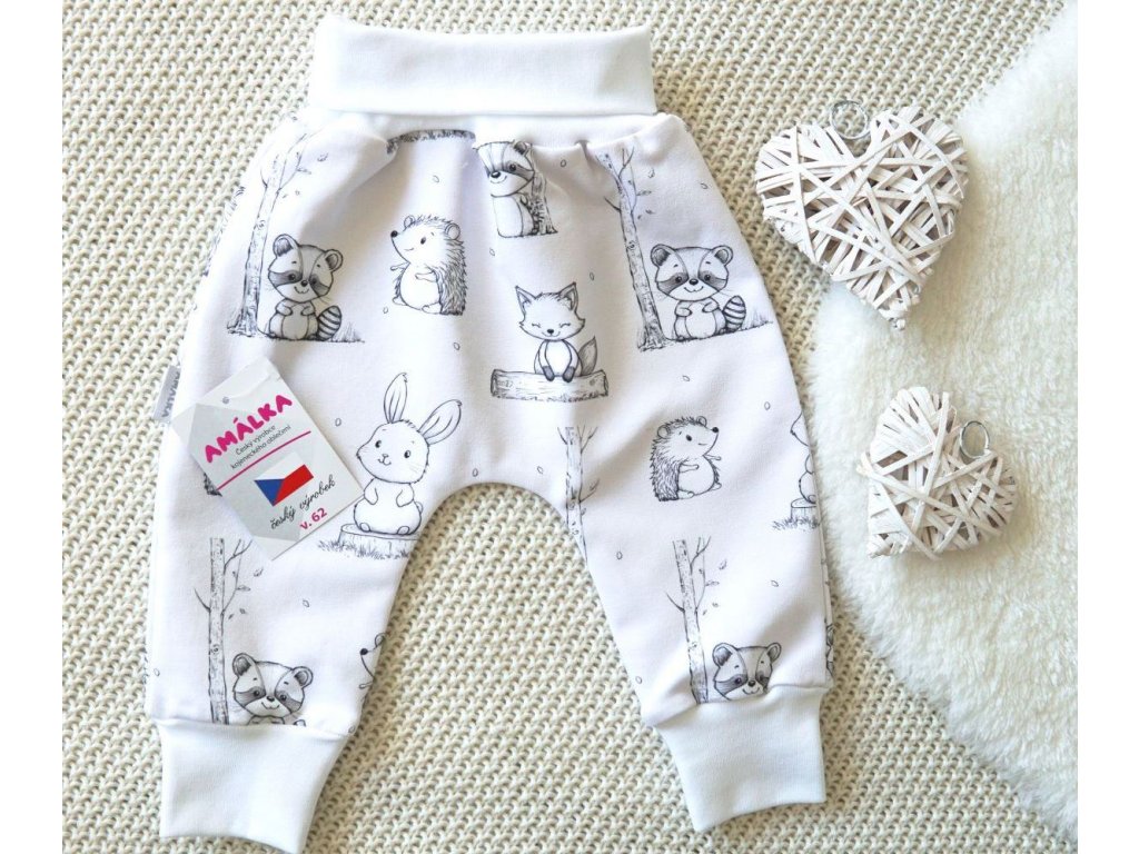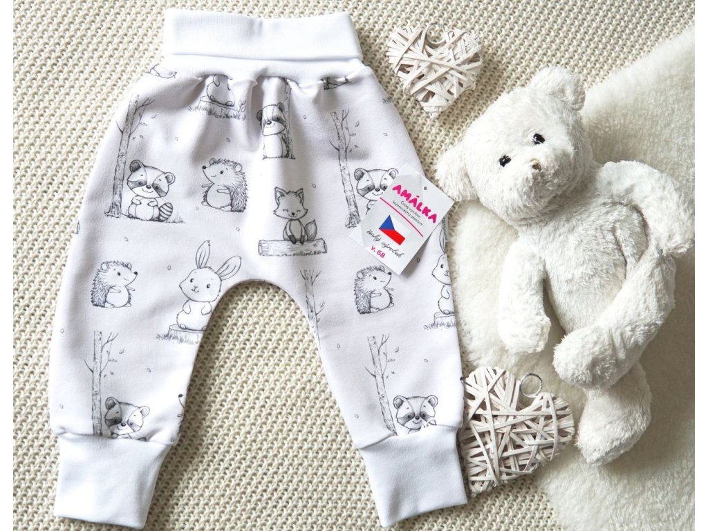 Elastické kalhoty teplákovina, kamarádi zvířátka