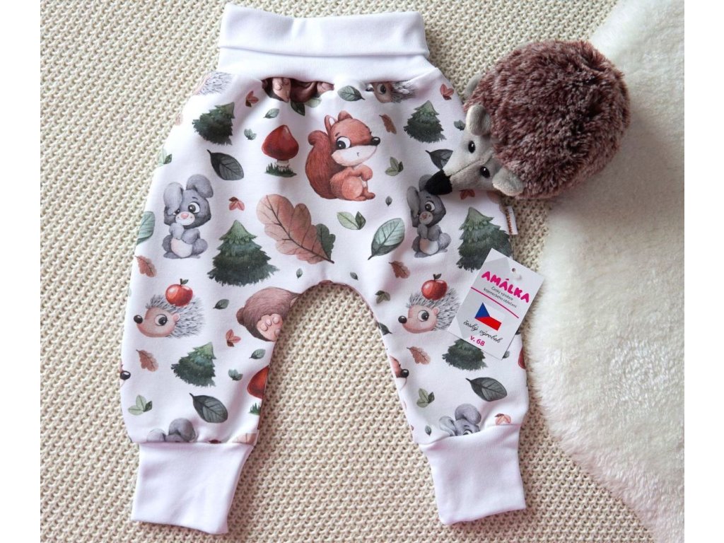 Elastické kalhoty teplákovina, zvířátka v lese