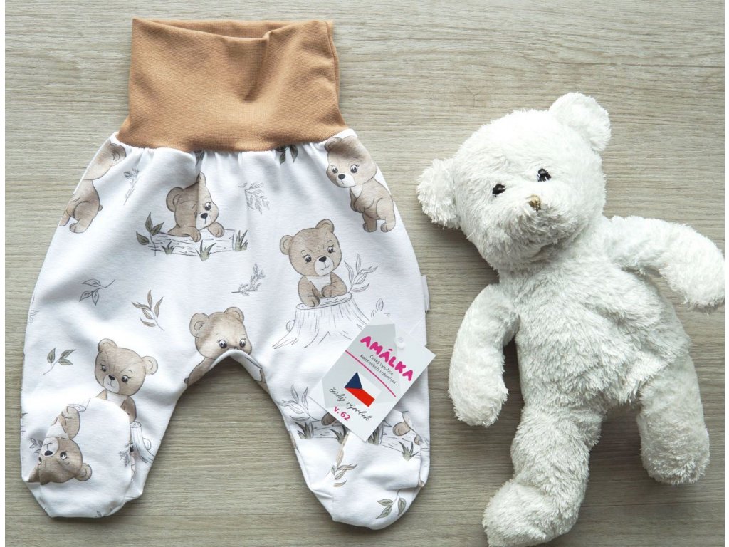 Kvalitní kojenecké polodupačky z elastického, bavlněného materiálu teplákoviny. Kouzelný, digitální potisk medvídka. V pase jsou do vysokého elastického nápletu - 95%.