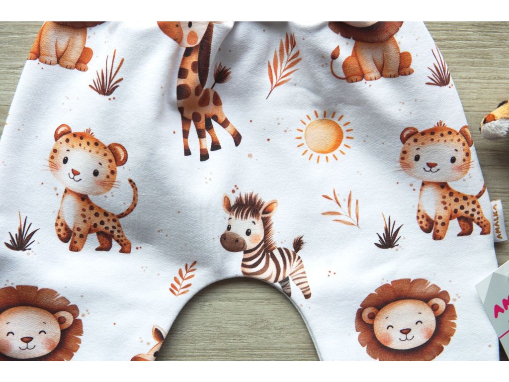 Kvalitní teplákovina v digitálním potisku rozkošných zvířátek Safari, který okouzlí každé miminko.