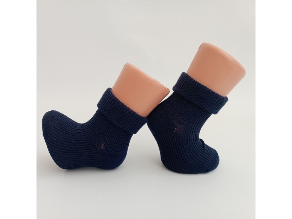 Kojenecké bavlněné ponožky přeložený lem, tmavě modré