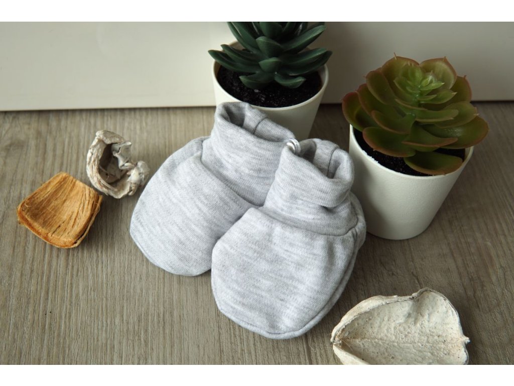 Kojenecké bavlněné capáčky, šedý melír