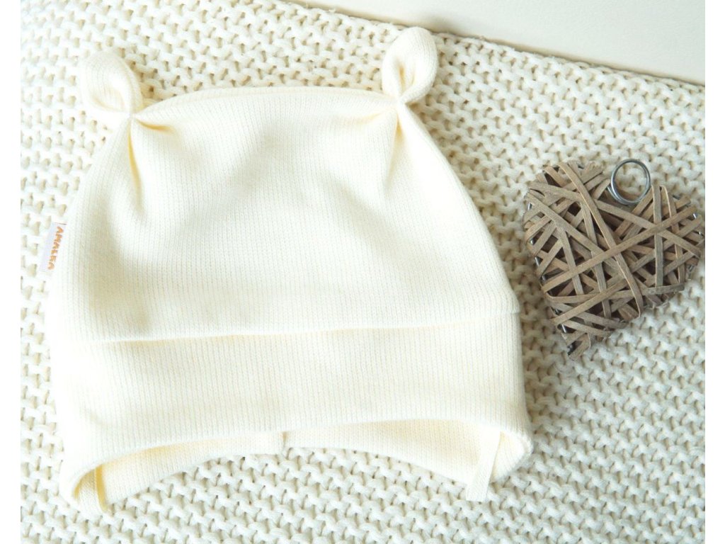 Zavazovací čepička z bavlněné svetroviny, smetanová