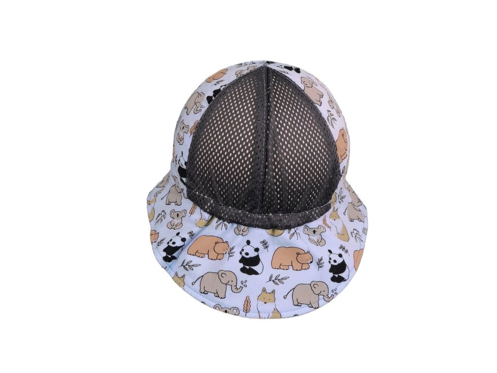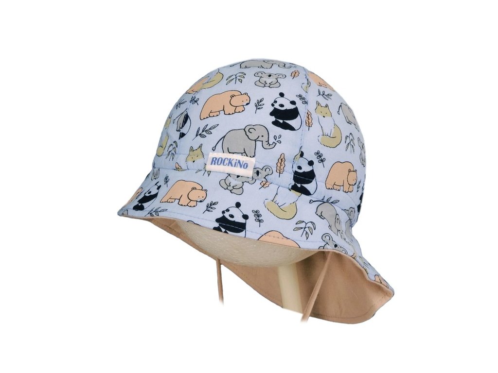 Letní chlapecký klobouk z velmi lehké, krešované bavlny se šňůrkami. Kombinace s bavlněnou větrací síťkou v zadní části. Zdobený kvalitním sítotiskem. Krempa je vzadu prodloužená a chrání tak krk před sluníčkem. Všitá guma z důvodu přizpůsobivosti obvodu o 3-4 cm.