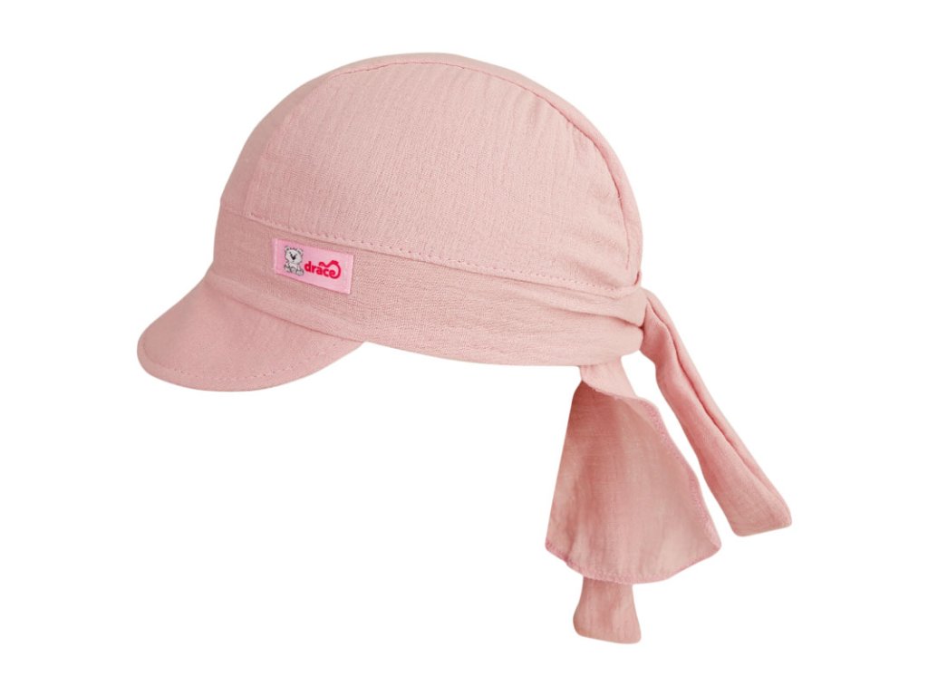 Letní bavlněný šátek pirát kšilt Mušelín, pudrově růžový 1-3roky