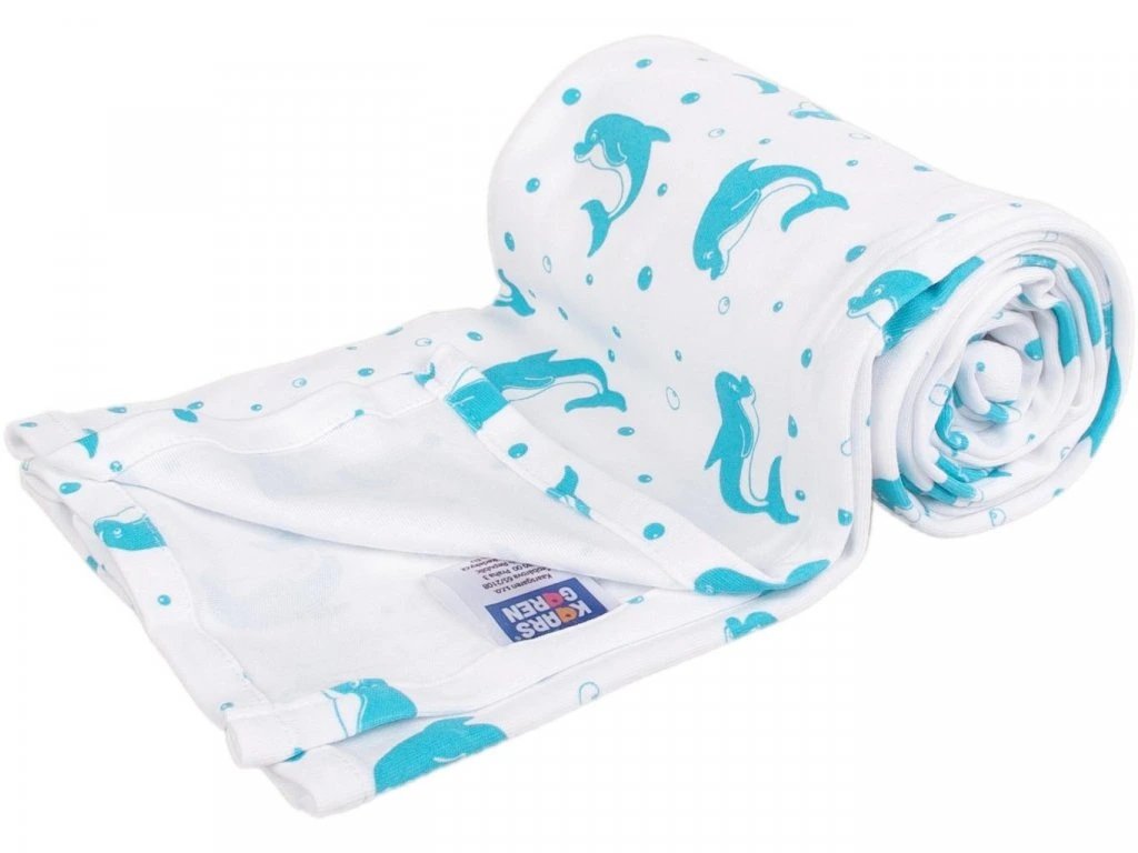 Letní deka ze 100% bio-bavlny s motivem delfínků.