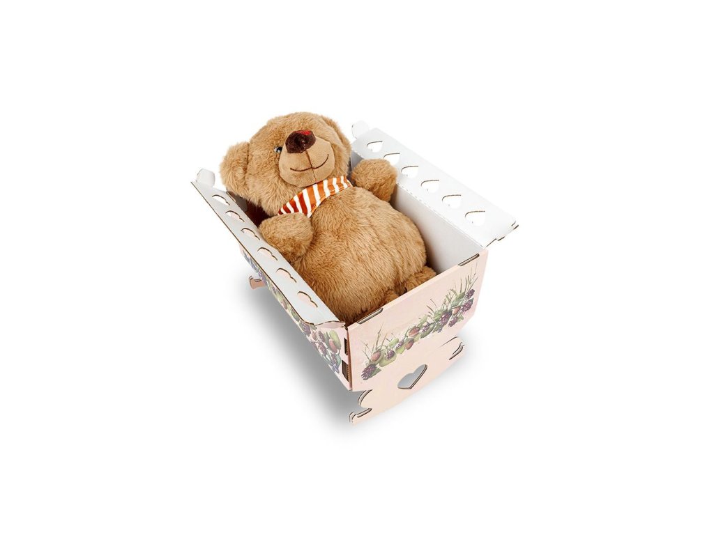 Dárková krabice s kouzlem – obal není jen krabicí. Doma jej jednoduchým trikem snadno proměníte v kolébku pro medvídka. Děti si ji oblíbí nejen jako postýlku pro usínání, ale i při každodenním hraní.