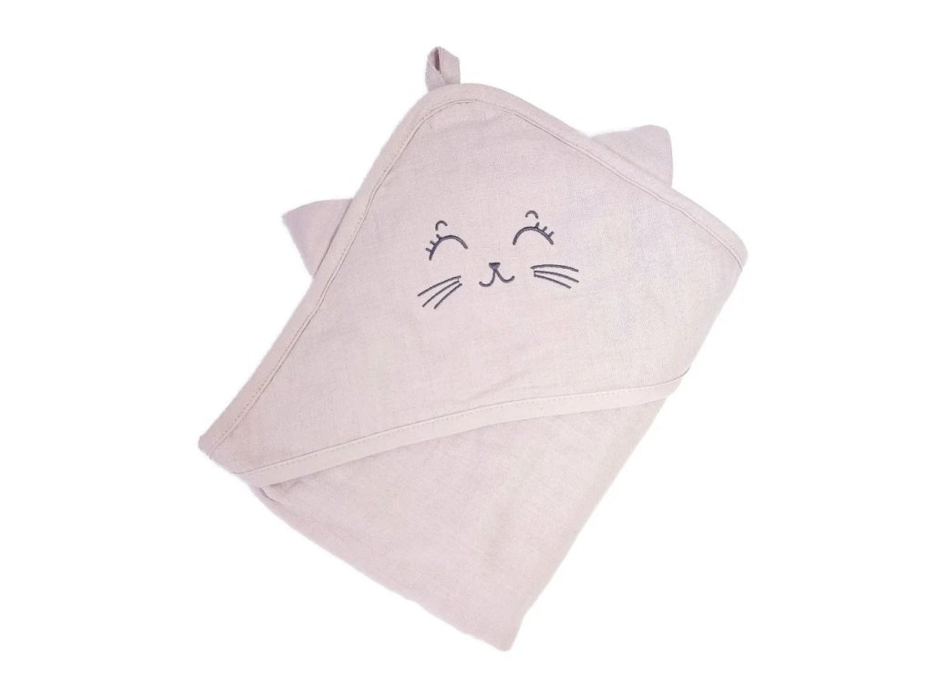 Osušky jsou zdobené okouzlující dětskou výšivkou s motivem kočky.