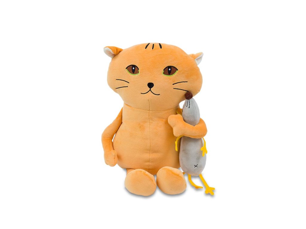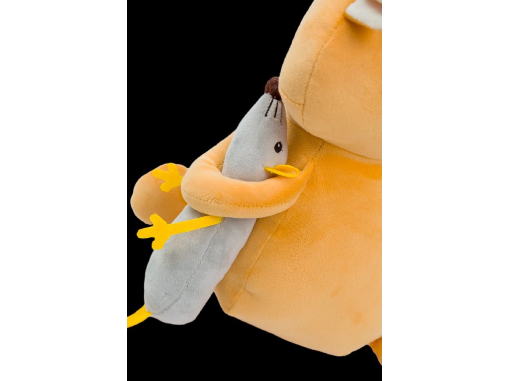 Plyšák-polštářek kočka s myší z mikrospandexu, 30 cm, béžová