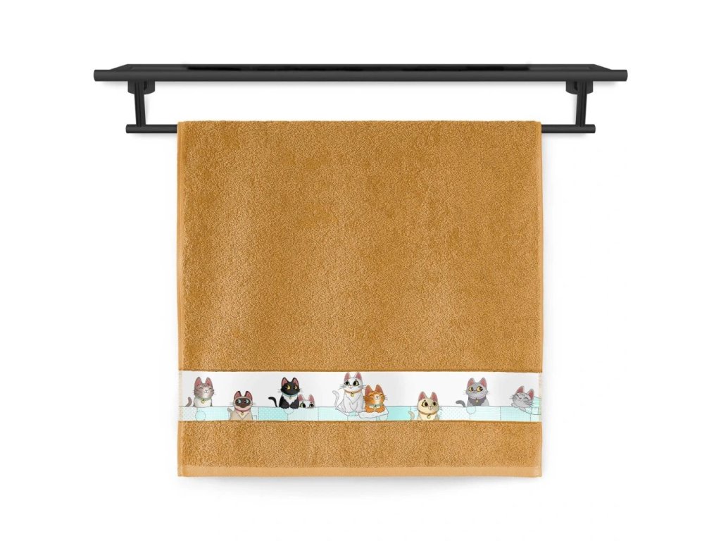 Ručník Veba tisk Zvědavá koťátka, okrová 50x100cm
