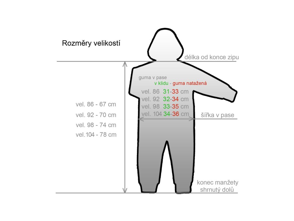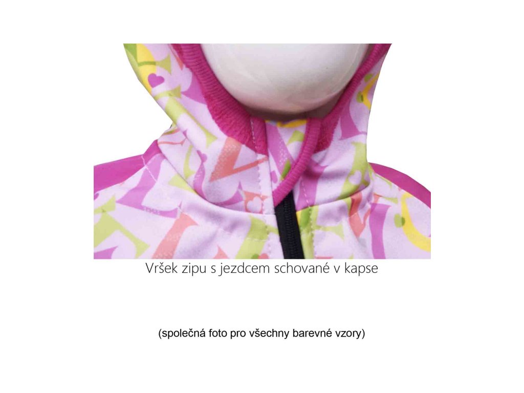 - Dlouhý šikmý zip, který malým dětem velmi usnadňuje oblékání