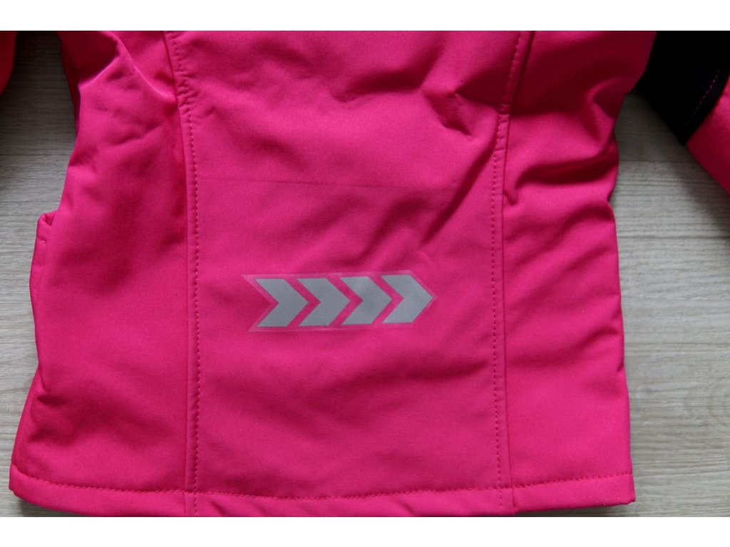Dívčí bunda pro období jaro/podzim z kvalitního třívrstvého membránového softshellu s kapucí. Vnitřní vrstva microfleece. Po stranách dvě kapsy, ozdobné prošití a na zádech reflexní tvar. Kvalitní hloubkový sítotisk, moderní kombinace barev kde je každý rukáv v opačném designu. Pevné šité poutko na zavěšení, které se dětem snadno používá a pevný silný zip. Kvalitní bunda, která perfektně odolá větru a vodě.