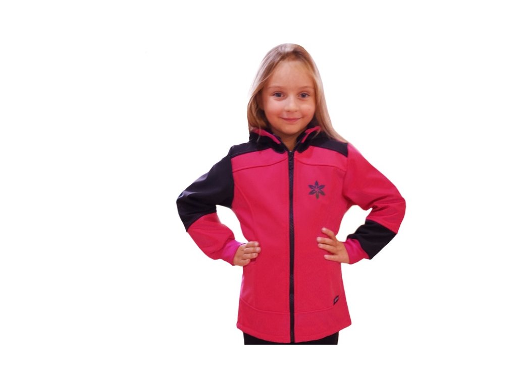 Dívčí bunda pro období jaro/podzim z kvalitního třívrstvého membránového softshellu s kapucí. Vnitřní vrstva microfleece.