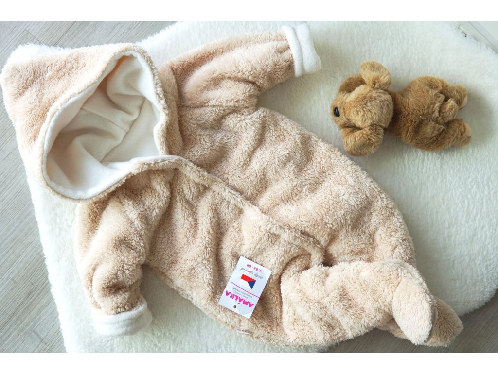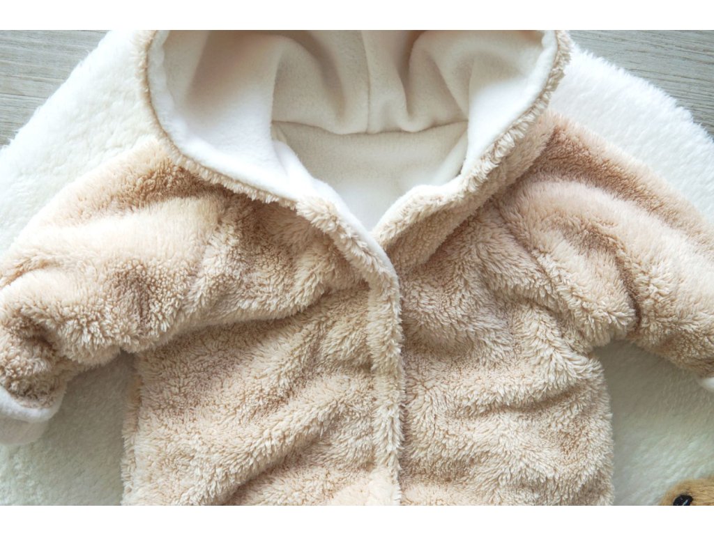 Krásná chlupatá kombinézka v oříškové barvičce pro miminka od podzimu do jara.