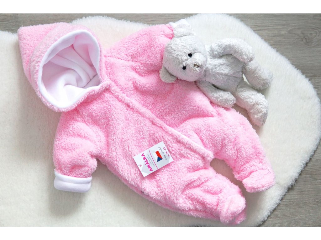 Krásná chlupatá kombinézka v sladce růžové barvičce pro miminka od podzimu do jara.