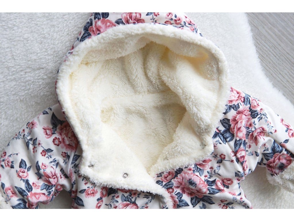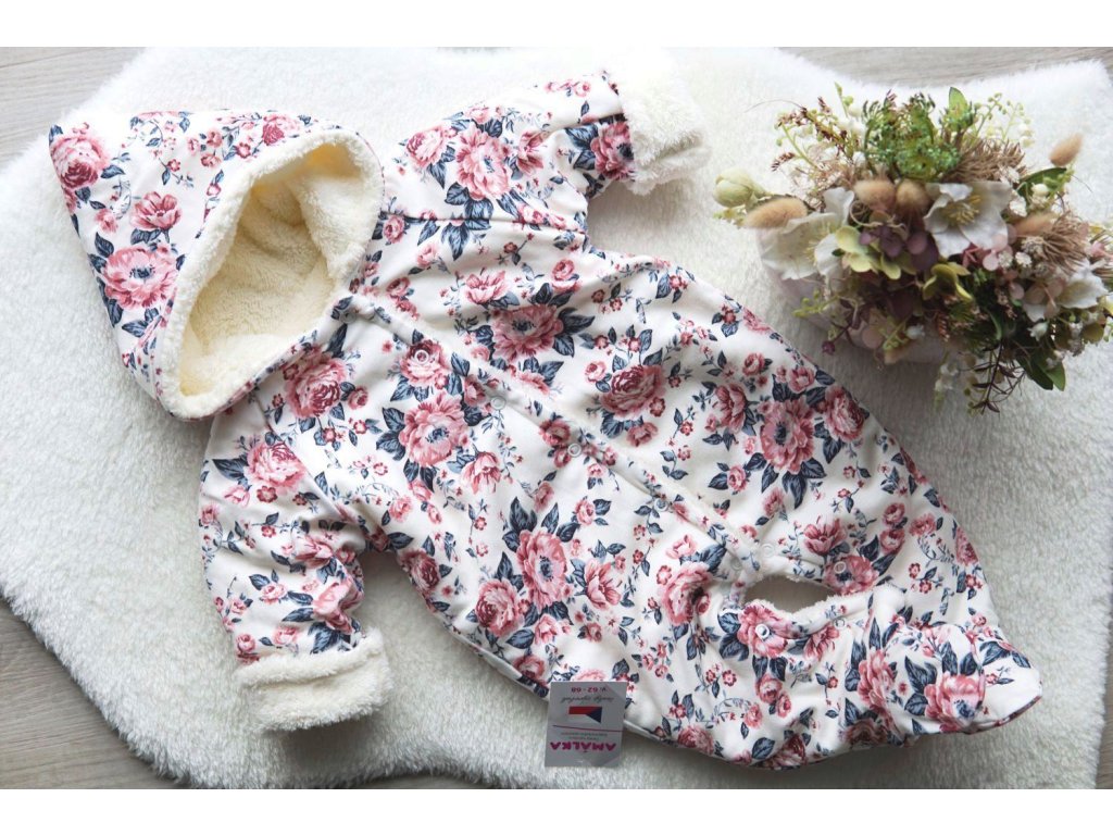 Krásná zateplená kombinézka pro miminko od podzimu do jara. Vrchní materiál je bavlněný, v romantickém, krásném potisku s květy...