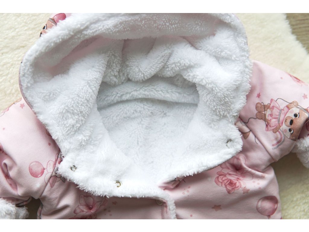 Zateplená růžová kombinéza, medvědí holčička 2.jakost