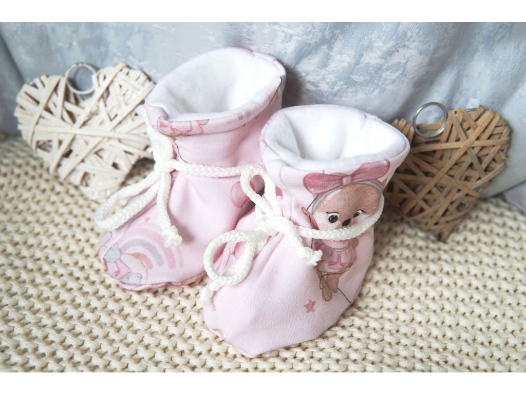 Zateplené bačkůrky medvědí holčička fleece, pudrově růžové