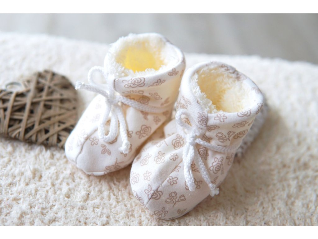 Zateplené bačkůrky pro miminko, oříškové květinky