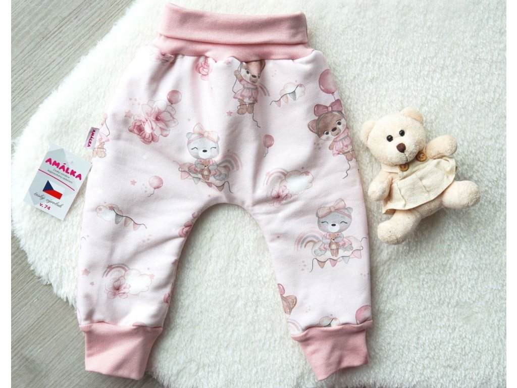 Zateplené kalhoty teplákovina-fleece, medvědí holčička