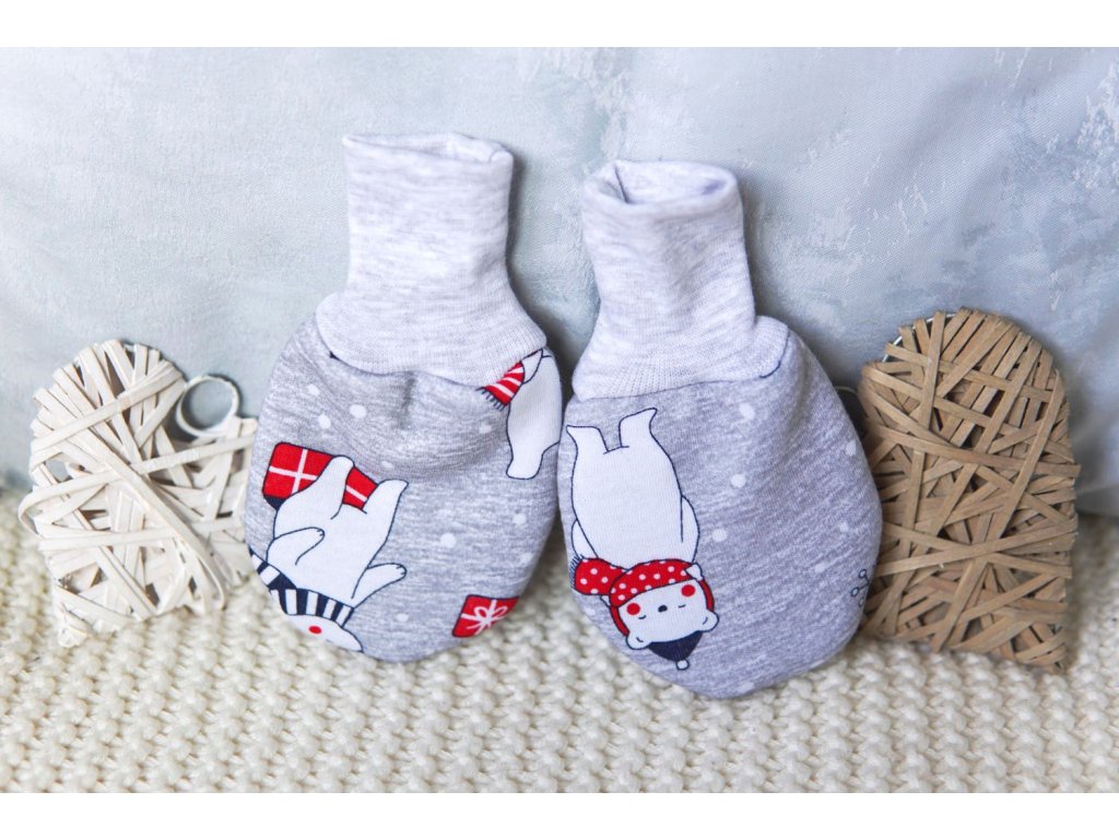 Rukavičky bez palečku pro miminko. Vrchní materiál je bavlněný, v kouzelném potisku. Podšité teploučkým fleecem.