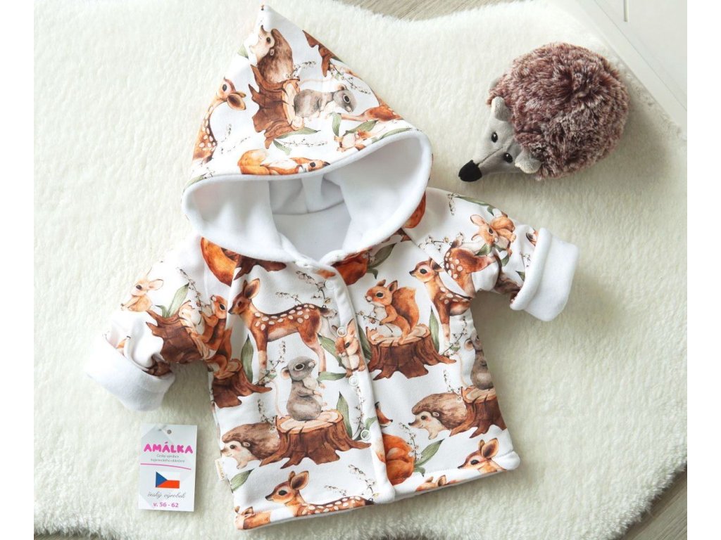 Zateplený kabátek, bunda, lesní zvířátka s fleecem