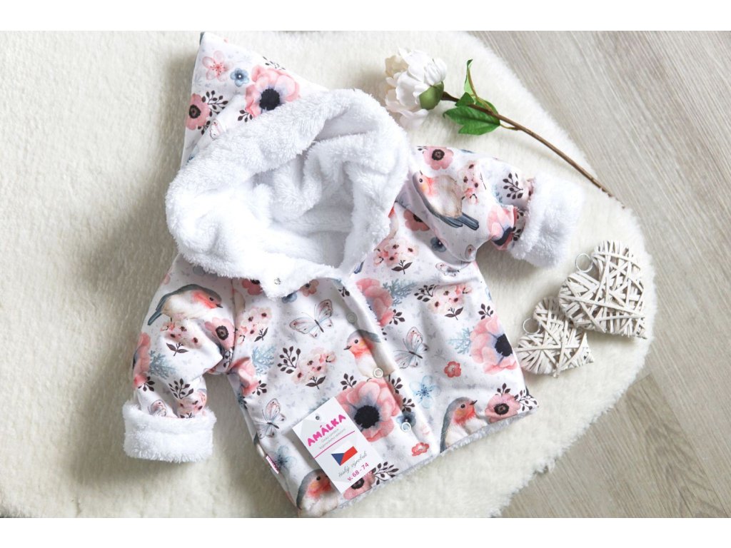 Kabátek je zateplený hebkou chlupatkou bílé barvy.