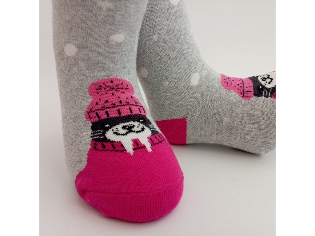Zimní froté ponožky mrož, růžovošedé
